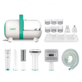 ست ماشین اصلاح حیوانات وی جی آر یکی از کامل ترین و با کیفیت ترین محصولات کمپانی وی جی آر است. که واقعا برای هر فرد علاقمند به حیوانات خانگی، داشتن محصولی مانند این ست 7 کاره وی جی آر V-207 لازم و ضروری میباشد. در این محصول سعی شده تمامی ادوات لازم برای بهداشت و سلامت حیوانات موجود باشد. از جمله اقلام داخل پک بسته بندی میتوان به این موارد اشاره نمود: 1- وکیوم نظافتی، که حالت یک جارو برقی کوچک را دارد و این امکان را به شما میدهد هنگام نظافت و اصلاح حیوان خانگی محیط خانه تمیزی خود را حفظ بنماید و تمامی سری های همراه محصول از طریق لوله خرطومی به دستگاه وکیوم اتصال دارند. 2- سری اصلاح موهای زائد پنجه با توجه به شکل ظاهری و طراحی آن این امکان را فراهم میآورد که تمامی موهای زائد بین پنجه ها را کوتاه و اصلاح نمائید. 3- برس نظافتی که دارای دندانههای فلزی میباشد و این قابلیت را به شما میدهد که موهای پت را به بهترین شیوه شانه و آراسته نمائید. 4- برس شست و شو این برس با دندانههای فلزی خود این قابلیت را برای شما فراهم میآورد که تمامی کنه های روی بدن حیوان خانگی خود را از بین ببرید. 5- ماشین اصلاح شارژی که مجهز به باتری 1200 میلی آمپر است که در مدت زمان 180 دقیقه شارژ و پس از آن به مدت 180 دقیقه به شما کار میدهد.