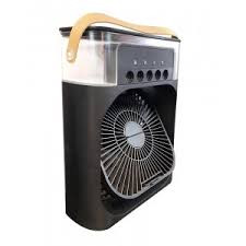 پنکه مه پاش رومیزی مدل Air Cooler Fan فاقد باتری است و به صورت مستقیم توسط آداپتور و کابل USB Type C به برق متصل میشود. دارای پنج نازل مه پاش قوی و قابلیت تنظیم تعداد مه پاش ها است.. فن دستگاه قابلیت تنظیم دستی و چرخش ۳۶۰ درجه در یک جهت را دارد و محافظ فن دارای قابلیت باز و بسته شدن جهت نظافت پره ها میباشد. ترجیحا از آب تصفیه شده درون دستگاه استفاده شود جهت جلوگیری از رسوب.